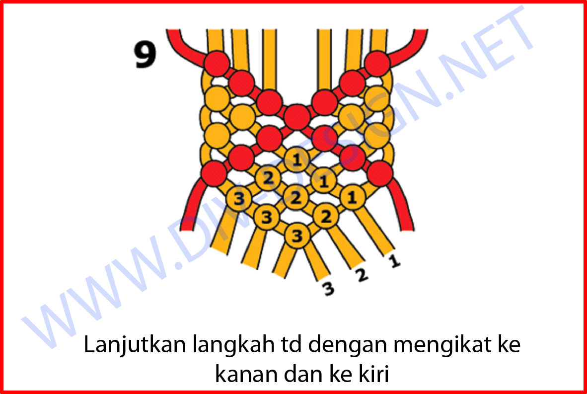 Kemudian lanjutkan ikatan benang merah, sehingga seperti gambar di atas. Toturial Craft/Kerajinan